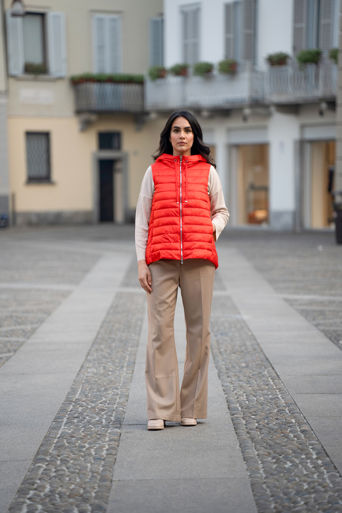 gilet 100gr con front trapuntato e cappuccio/back lisci
