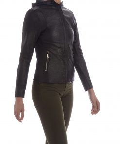 Giacca corta in eco dainetto, veste aderente al corpo ed esalta la silhouette. Il materiale è soffice e vellutato al tatto.