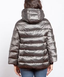 Cappa morbida in soft nylon con dettagli in velour e cappuccio staccabile