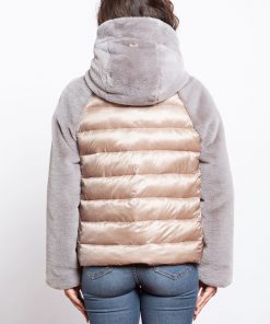 Giubbino in soft nylon con cappuccio e maniche in morbida ecopelliccia